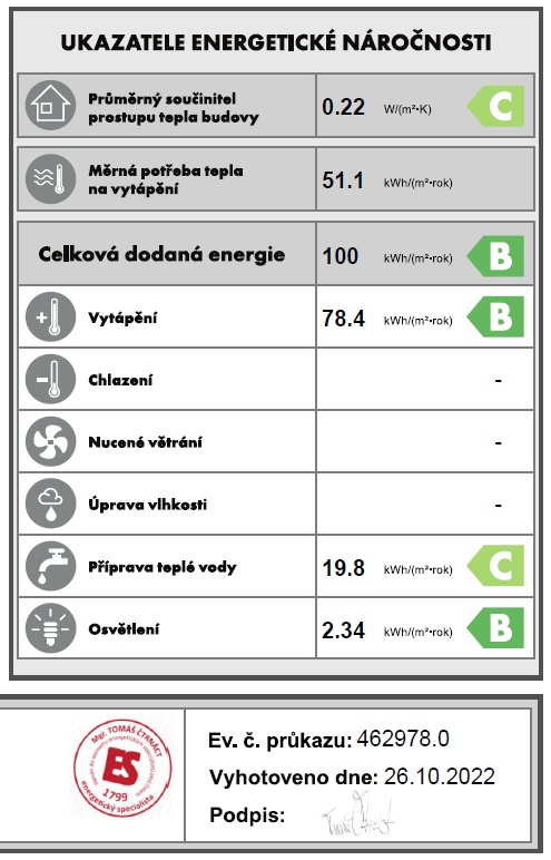 Dům je postaven z pálených keramických cihel Porotherm, zateplení
