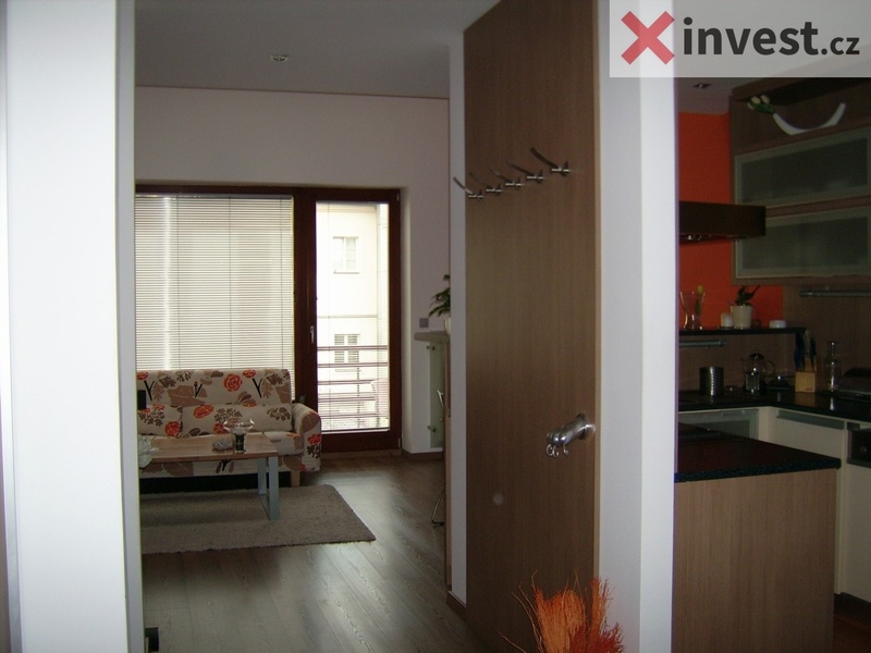 chodbou je přístup do hlavní obytné místnosti s balkonem a kuchyňským